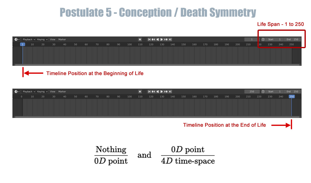 3D modeling has shown us that all moments exist. When we think of past moments, such as a day last week, we think in terms of calling up a memory of that moment. As such memory seems weak and vague. 3D modeling shows us that we can access any moment we like simply by moving the pointer on Blender's Timeline Panel.