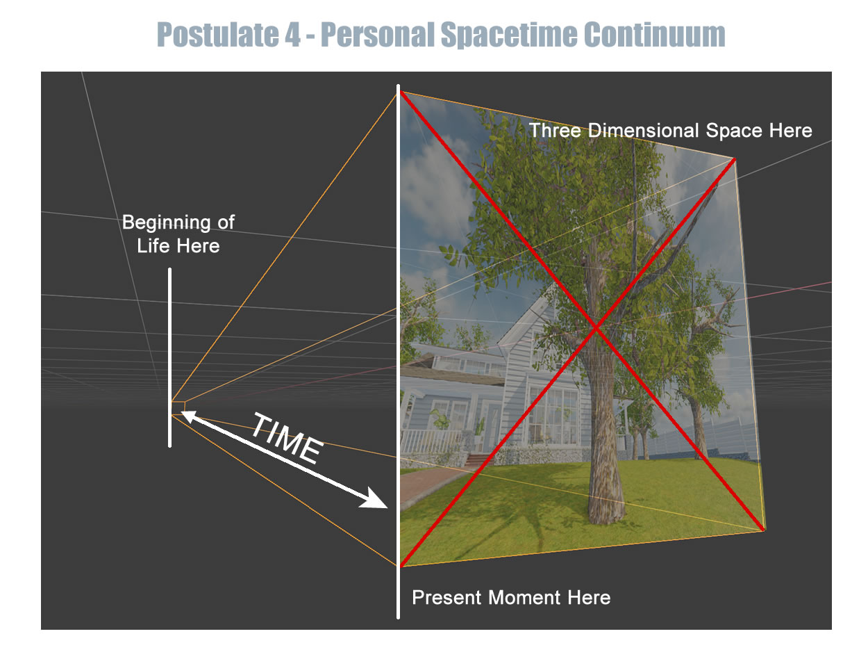 Real life operates the same way. Moments of the past are stored in memory. We could, in theory, be inside any moment we want simply by moving a pointer on a timeline. The implications of this concept are profound. This means that inside our memory we have all the moments we have ever experienced. Like 3D software, these are not copies of moments. These are the actual moments. It simply means that the timeline pointer is located at another moment in time.